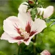 Der Garteneibisch 'Mathilda' (Hibiscus syriacus) ist ein aufrechter Strauch, der rot-weiße, schalenförmige Blüten hervorbringt. Sie erscheinen von Juli bis September. An einem sonnigen bis halbschattigen, windgeschützten Standort mit durchlässigem, nährstoffreichem Boden erreicht er gewöhnlich eine Höhe von ca. 2,5 m und wird ca. 1,2 m breit.
