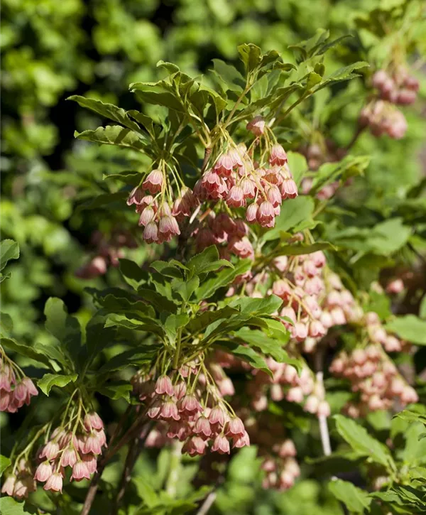Die Prachtglocke (Enkianthus campanulatus) ein aufrechter, lockerer Strauch, der, je nach Sorte, glockenförmige Blüten in verschiedenen Farben hervorbringt. An einem halbschattigen bis schattigen Standort mit humosem, kalkfreiem, saurem Boden erreicht sie gewöhnlich eine Höhe von ca. 4 m und wird ca. 3 m breit.