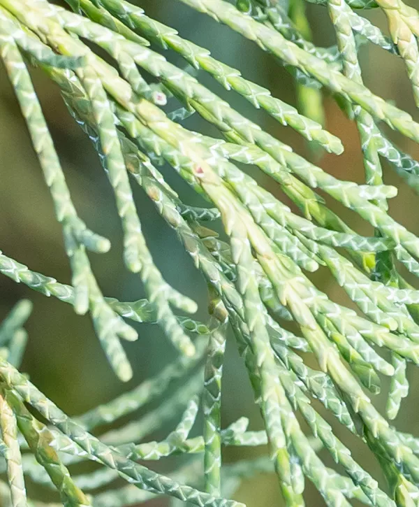 Die Gartenzypresse 'Waterfall' ist immergrün. Ihre Nadeln sind blau-grau.
