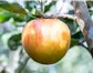 Malus domestica 'Ribston Pepping' bildet grünrote, runde Früchte.