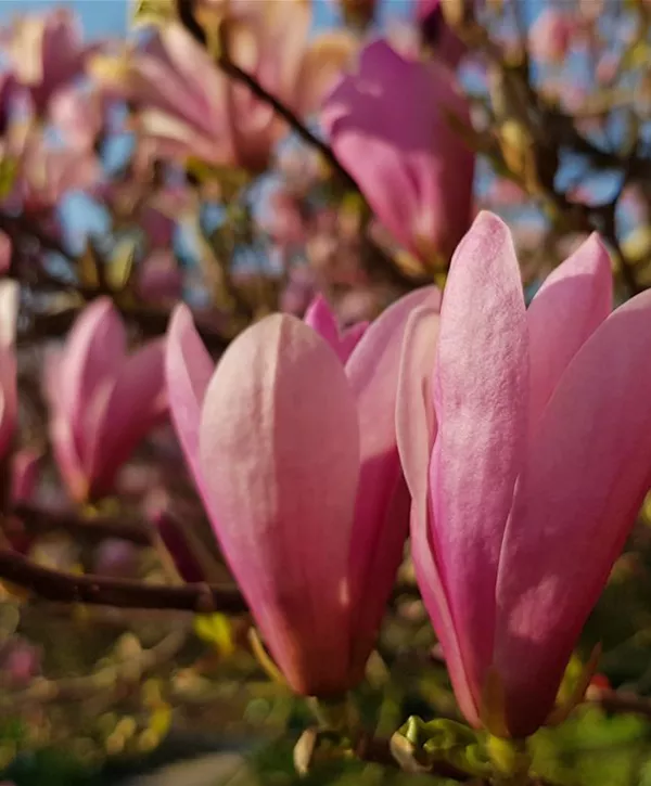 Tulpen-Magnolie ist ein ausladend, breit wachsender, malerischer Großstrauch. Sie erreicht gewöhnlich eine Höhe von 4 - 8 m und wird ca. 4 - 6 m breit. In der Regel wächst sie 25 - 30 cm pro Jahr.