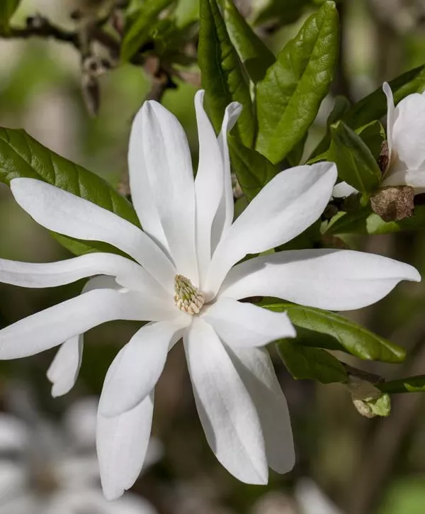Die Sternmagnolie (Magnolia stellata) ein dichter, verzweigter Strauch, der, je nach Sorte, sternförmige Blüten in verschiedenen Farben hervorbringt. Ihre Rinde ist grau, glatt. An einem sonnigen, windgeschützten Standort mit durchlässigem, humosem, nährstoffreichem Boden erreicht sie gewöhnlich eine Höhe von ca. 3 m und wird ca. 3 m breit.