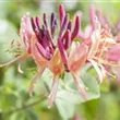 Die zweifarbigen, röhrenförmigen Blüten der Wald-Geisschlinge 'Serotina' erscheinen in Quirle von Mai bis Juli. Diese werden etwa 4 - 5 cm groß und sind stark duftend.