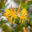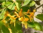 Die Gold-Geißschlinge (Lonicera tellmanniana) ist eine rankende, überhängende Gartenpflanze mit dekorativen, orangefarbenen, runden Früchten. Die röhrenförmigen Blüten erscheinen je nach Sorte in verschiedenen Farben.