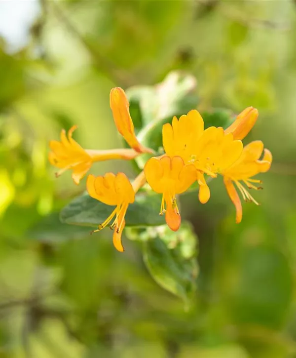 Die orangegelben, röhrenförmigen Blüten der Gold-Geißschlinge erscheinen in Quirle von Mai bis Juli. Diese sind angenehm duftend.