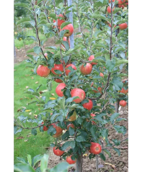 Apfel 'Karneval'(s) ist ein aufrecht und breit wachsender Kleinbaum. Er erreicht gewöhnlich eine Höhe von 2 - 3 m und wird ca. 2 - 3 m breit. In der Regel wächst er 20 - 30 cm pro Jahr.