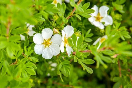 Potentilla fruticosa 'Bellissima' ist ein Flachwurzler und bildet, je nach Boden, fein verzweigte Wurzeln.