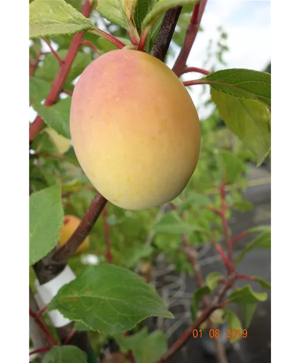 Die orangegelben Steinfrüchte haben einen süßen Geschmack. Das Fruchtfleisch ist saftig. Reifezeit ab Mitte August.