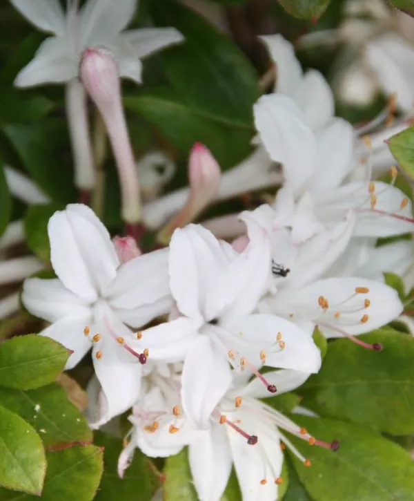 Rhododendron viscosum 'Sommerduft' bildet von Mitte Mai bis Anfang Juni zahlreiche trichterförmige, weiße Blüten. Diese verströmen einen starken Duft.