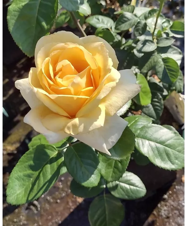 Die Edelrose 'Diva'® (Rosa) ist eine reichblühende Rose, die im Garten eine besondere Rolle spielt. Die gefüllten Blüten sind gelb, goldgelb und erscheinen zahlreich von Juni bis Oktober. Mit den richtigen Begleitern an ihrer Seite, kommt die Königin der Blumen besonders gut zur Geltung. Niedrige Stauden, Lavendel und Salbei eignen sich ganz gut für diese Zwecke.