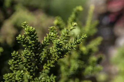 Besonders dekorativ sind die roten, beerenartigen Zapfen von Taxus baccata 'Repandens'. Diese erscheinen ab September.Die jungen Zapfen haben eine gelbe Färbung.