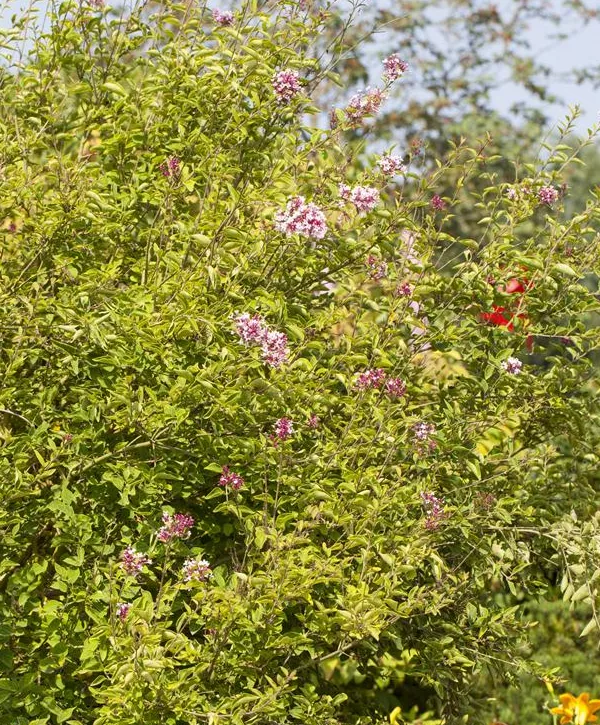 Herbstflieder 'Superba' ist ein buschig und dicht wachsender Kleinstrauch. Er erreicht gewöhnlich eine Höhe von 2 - 3 m und wird ca. 2 - 3 m breit. Langsam wachsend.