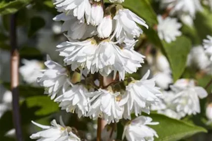 Die cremeweißen Blüten des Prager Schneeball erscheinen in Schirmtrauben von Mai bis Juni. Diese sind stark duftend.