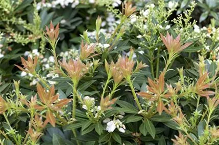 Die hellrosafarbenen Blüten des Lorbeer-Schneeball 'Spirit' erscheinen in Schirmtrauben von März bis April. Diese sind leicht duftend. Bei richtiger Pflege Nachblüte im November.