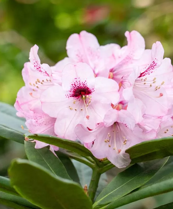 Rhododendron calophytum 'Sarastro' bildet von Ende März bis Anfang April zahlreiche trichterförmige, rosafarbene Blüten.