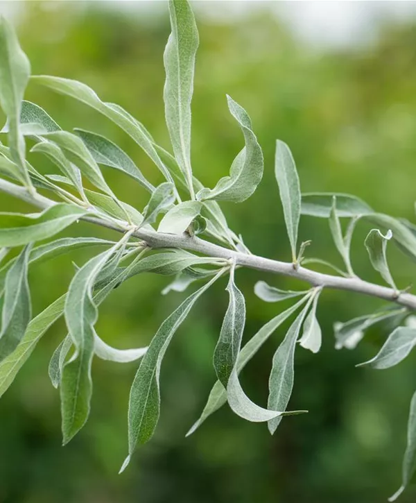 Die Schmalblättrige Ölweide (Elaeagnus angustifolia) ist ein unregelmäßiger, malerischer, Kleinbaum mit dekorativen sommergrünen, lanzettlichen, silbrigen Blättern. Auch der weiße Austrieb ist sehr schön.