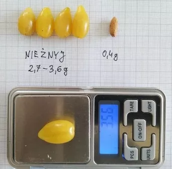 • Frucht: flaschenförmig, gelb, Frucht bis 3,5 cm, 4-5,5 g