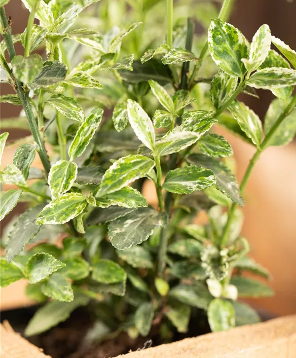 Die Kriechspindel 'Harlequin' weist eine gute Frosthärte auf.