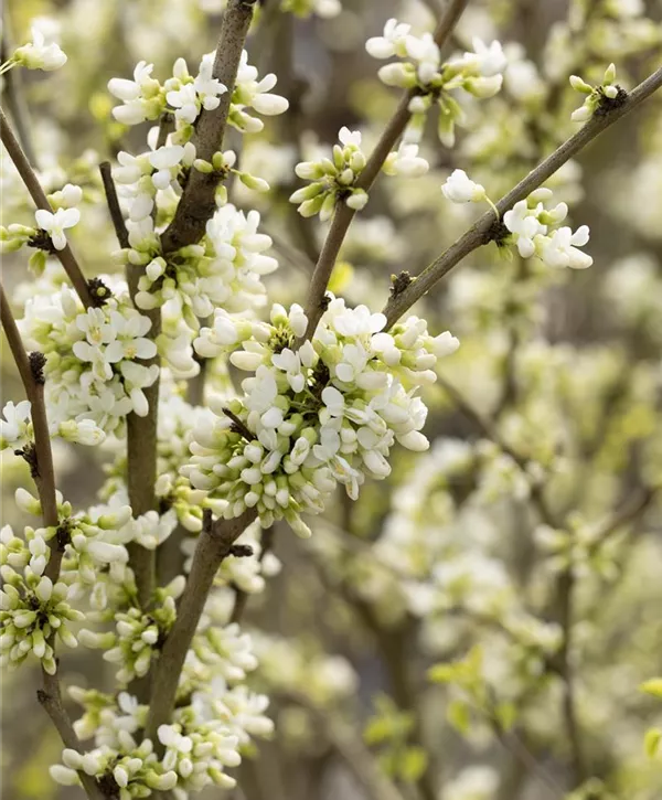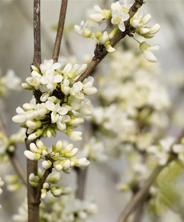 Judasbaum 'Shirobana' ist ein Großstrauch. Er erreicht gewöhnlich eine Höhe von 2,5 - 3,5 m und wird ca. 2 - 3 m breit. In der Regel wächst er 10 - 25 cm pro Jahr.