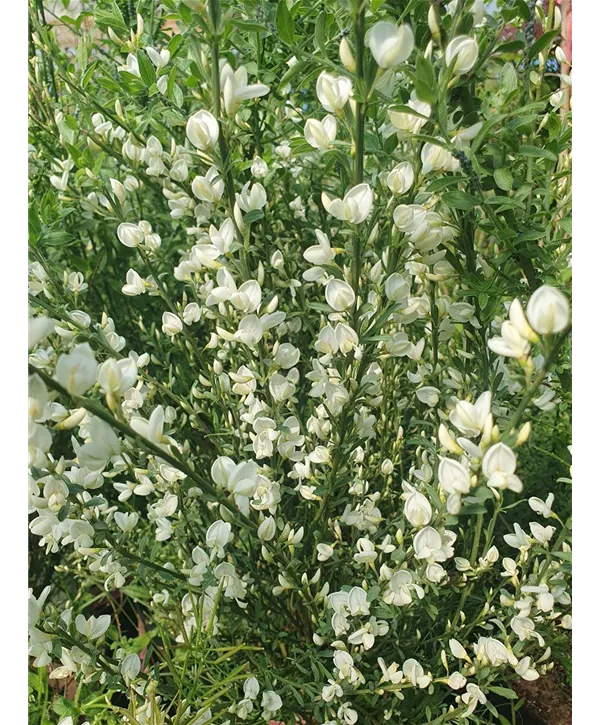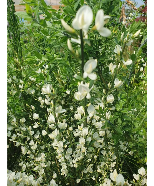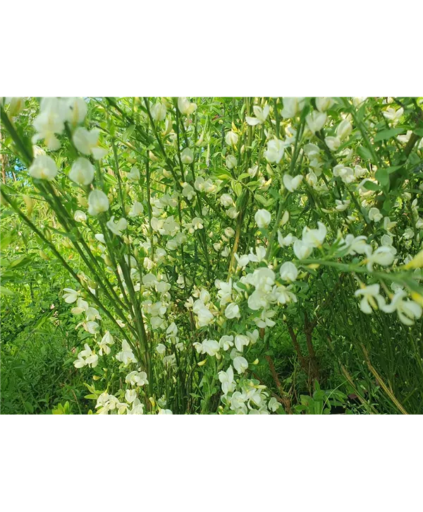 Elfenbeinginster 'Albus' ist ein buschig und dicht wachsender Strauch. Er erreicht gewöhnlich eine Höhe von 1,5 - 2 m und wird ca. 1 - 2 m breit.