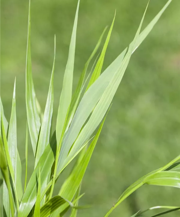 Die sommergrünen Blätter des Japanischen Berggrases sind dunkelgrün, lineal.