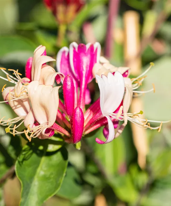 Die Wald-Geißschlinge (Lonicera periclymenum) ist eine rankende Gartenpflanze mit dekorativen, dunkelroten, runden Früchten. Diese verströmen einen starken Duft. Diesen voraus bringt sie von Mai bis Juli cremeweiße, röhrenförmige, in Quirle angeordnete Blüten hervor. Zudem trägt die Wald-Geißschlinge, eiförmige, dunkelgrüne Blätter. An einem sonnigen bis halbschattigen Standort mit humosem, kalkfreiem Boden erreicht sie gewöhnlich eine Höhe von ca. 6 m und wird ca. 3 m breit.
